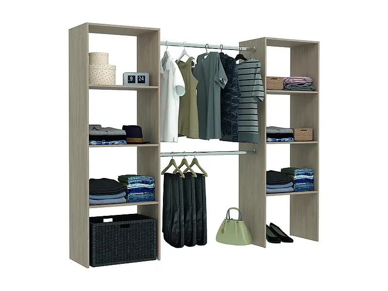 Kleiderschrank mit 6 Fächern und 2 Garderoben: ‌220 x 40 x 180 cm ELYSEE Preisknaller