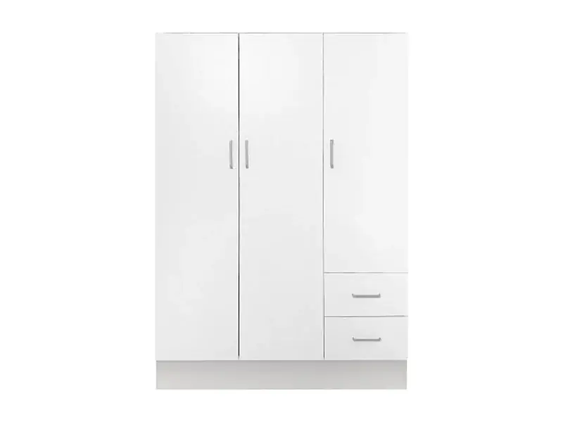 Kleiderschrank mit drei Türen und zwei Schubladen mit Einlegeböden und Kleiderstange, Farbe weiß, Maße 120 x 170 x 50 cm Echt