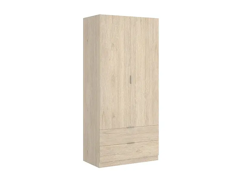 Kleiderschrank Pisanino, Garderobe für Schlafzimmer, Kleiderschrank mit 2 Flügeltüren und 2 Schubladen, 81x52h184 cm, Eiche Billig