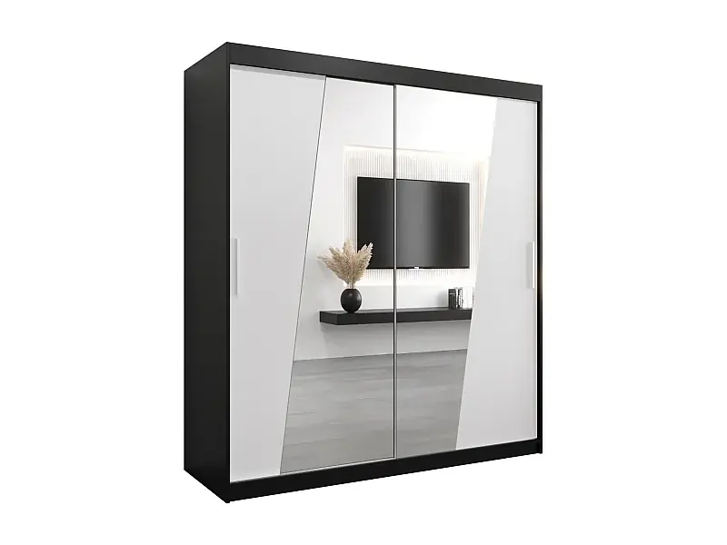 Knallerangebot Schwebetürenschrank Wave 200/180/62 2-Türig (Schwarz/Weiß)