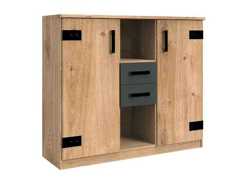 Kommode, 2 Türen, 2 Schubladen und 2 offene Nischen – L124 cm Kracherpreis