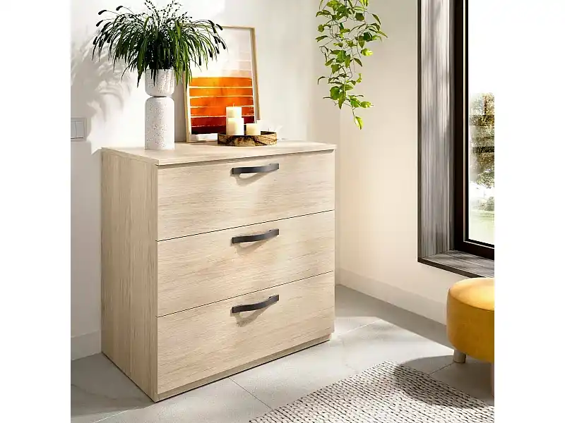 Kommode Dlovato, Kommode für Schlafzimmer, Kommode mit 3 Schubladen, 70x45h72 cm, Eiche Meistverkauft
