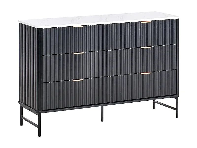 Kommode mit 6 Schubladen und geriffelter Front Modernes Design MDF Metallbeine Marmoreffekt Schwarz Glastonbury Meistverkauft