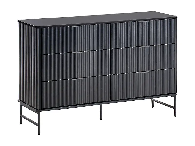 Kommode mit 6 Schubladen und geriffelter Front Modernes Design MDF Metallbeine Schwarz Glastonbury Rabatt