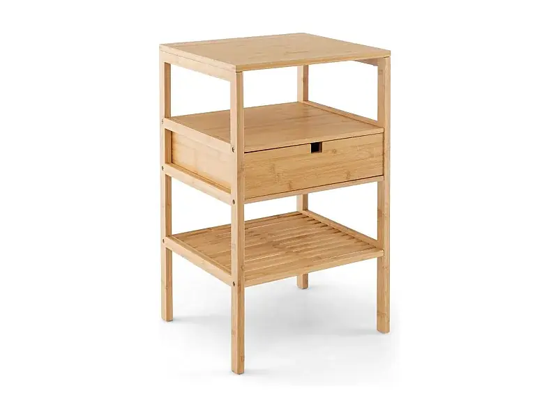 Kostenfreie Lieferung 3-stufiger Nachttisch aus Bambus mit Schublade und Lattenregal Beistelltisch Natur