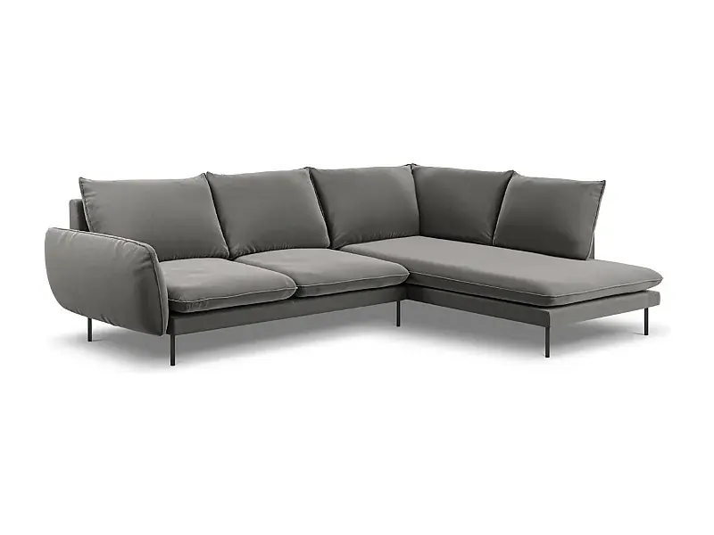 Kostenfreie Lieferung Cosmopolitan Design – 6-Sitzer Ecksofa rechts „Vienna“ aus Samt hellgrau – 275x185x95cm
