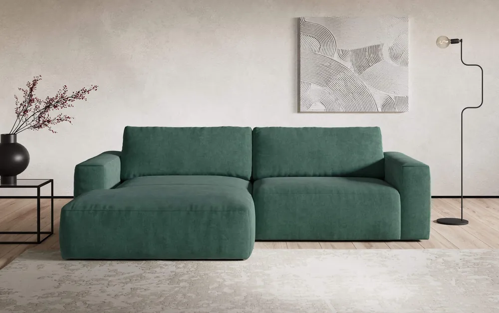 Stylisches Ecksofa Anton mit Schlaffunktion und Bettkasten beidseitig montierbar im robustem Luxus-Webstoff Flachgewebe Auf die Plätze, Fertig, Los! Auf dem Ecksofa Anton von Black Red White mit einem Stellmaß von 289 x 189 ist genügend Platz, damit sich jeder seinen Lieblingsplatz sichern kann. Die knautschige Optik, die voluminösen und gemütlichen Polster mit vielen Kissen lassen das Ecksofa schnell zu ihrem persönlichen Lieblingsplatz werden. Der Besuch möchte doch spontan über Nacht bleiben? Eine integrierte Schlaffunktion lässt Anton im Handumdrehen in ein angenehmes Gästebett mit einer Liegefläche von 222 x 118 cm verwandeln. Das nötige Bettzeug können Sie einfach in dem unter der Bettfunktion gelegenen Bettkasten verstauen. Wählen Sie aus einer von vielen verfügbaren Farben und passen Sie Anton ihrem Wohnzimmer an. Das Sofa kann wahlweise mit Liegefläche links oder rechts aufgebaut werden. Finde bei Myhomelando dein Traumsofa für dein zuhause !!! Maße Ecksofa – alle Maße sind ca. Angaben Gesamt: 289 x 189 cm oder 189 x 289 cm Sitztiefe: 50 cm Sitzhöhe: 42 cm Rückenhöhe: 85 cm Ohne abgebildete Deko wie Kissen etc., Farbe auf dem Foto kann leicht vom Original abweichen (Bildschirm)