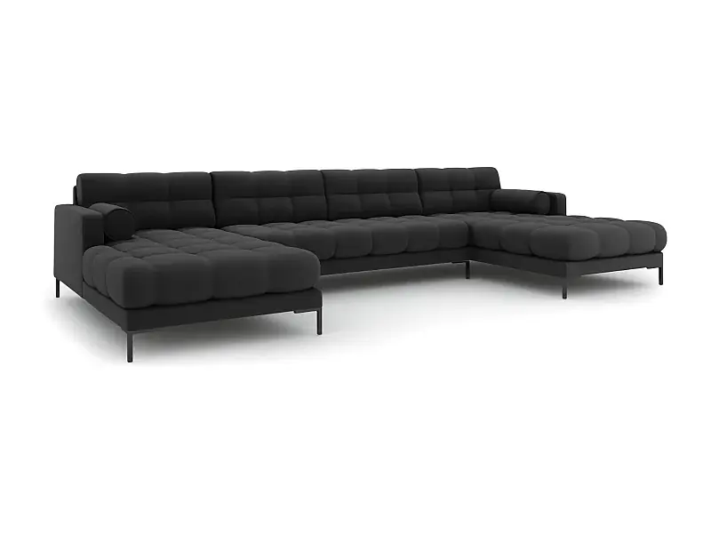 Kostenloser Versand Cosmopolitan Design – 7-Sitzer Panoramasofa „Bali“ aus strukturiertem Stoff dunkelgrau – 383x185x75cm