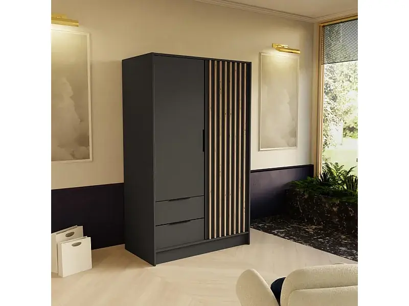 Kostenloser Versand DREHTÜRENSCHRANK Nero 100/51/200 cm mit Lamellen graphit