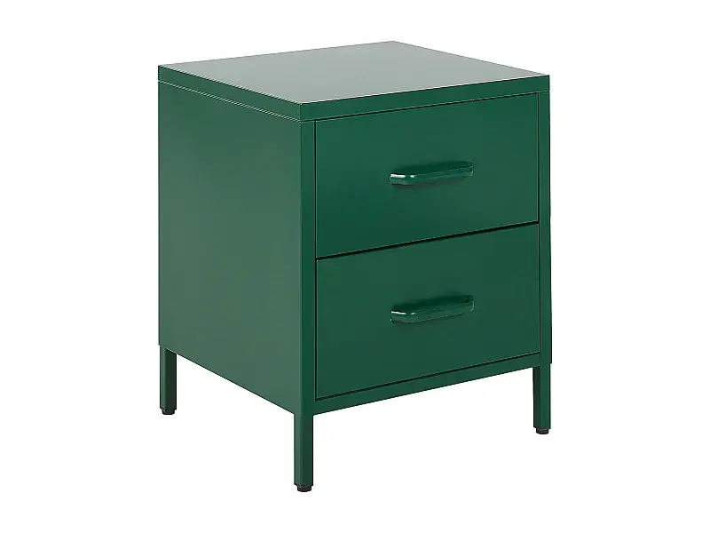Kostenloser Versand Nachttisch Stahl mit 2 Schubladen und 2 Griffen grün Industrie Look Malavi