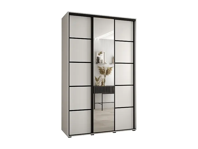 Kostenloser Versand SCHWEBETÜRENSCHRANK DAVOS 5 235,2/160/60 3-türig (Weiß/Weiß/Schwarz)