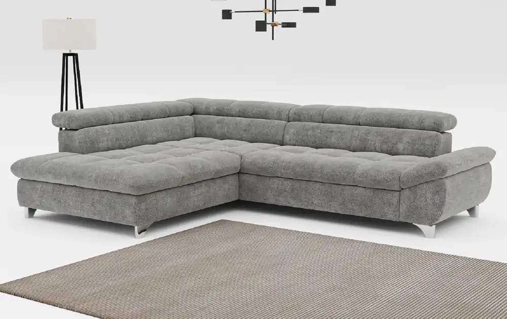 Stylisches Ecksofa Anton mit Schlaffunktion und Bettkasten beidseitig montierbar im robustem Luxus-Webstoff Flachgewebe  Auf die Plätze, Fertig, Los! Auf dem Ecksofa Anton von Black Red White mit einem Stellmaß von 289 x 189 ist genügend Platz, damit sich jeder seinen Lieblingsplatz sichern kann. Die knautschige Optik, die voluminösen und gemütlichen Polster mit vielen Kissen lassen das Ecksofa schnell zu ihrem persönlichen Lieblingsplatz werden. Der Besuch möchte doch spontan über Nacht bleiben? Eine integrierte Schlaffunktion lässt Anton im Handumdrehen in ein angenehmes Gästebett mit einer Liegefläche von 222 x 118 cm verwandeln. Das nötige Bettzeug können Sie einfach in dem unter der Bettfunktion gelegenen Bettkasten verstauen. Wählen Sie aus einer von vielen verfügbaren Farben und passen Sie Anton ihrem Wohnzimmer an. Das Sofa kann wahlweise mit Liegefläche links oder rechts aufgebaut werden. Finde bei Myhomelando dein Traumsofa für dein zuhause !!! Maße Ecksofa – alle Maße sind ca. Angaben Gesamt: 289 x 189 cm oder 189 x 289 cm Sitztiefe: 50 cm Sitzhöhe: 42 cm Rückenhöhe: 85 cm Ohne abgebildete Deko wie Kissen etc., Farbe auf dem Foto kann leicht vom Original abweichen (Bildschirm)