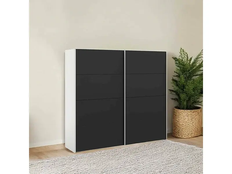 Kracherpreis Kleiderschrank 2 Türen Dspinos, Schlafzimmermöbel, Schrank, Garderobe, 243×61 h220 cm, Weiß und Schwarz