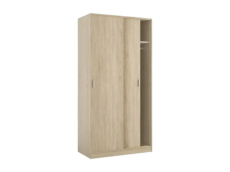 Lansing Kleiderschrank, Schlafzimmerschrank mit 2 Schiebetüren, Schrank mit Regal und Kleiderstange, 100x50h200 cm, Eiche Neu Im Sortiment