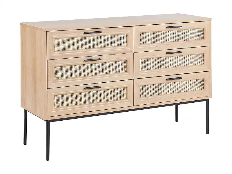 Letzte Chance Kommode 6 Rattan-Schubladen heller Holzfarbton schwarze Metallbeine modern Pasco