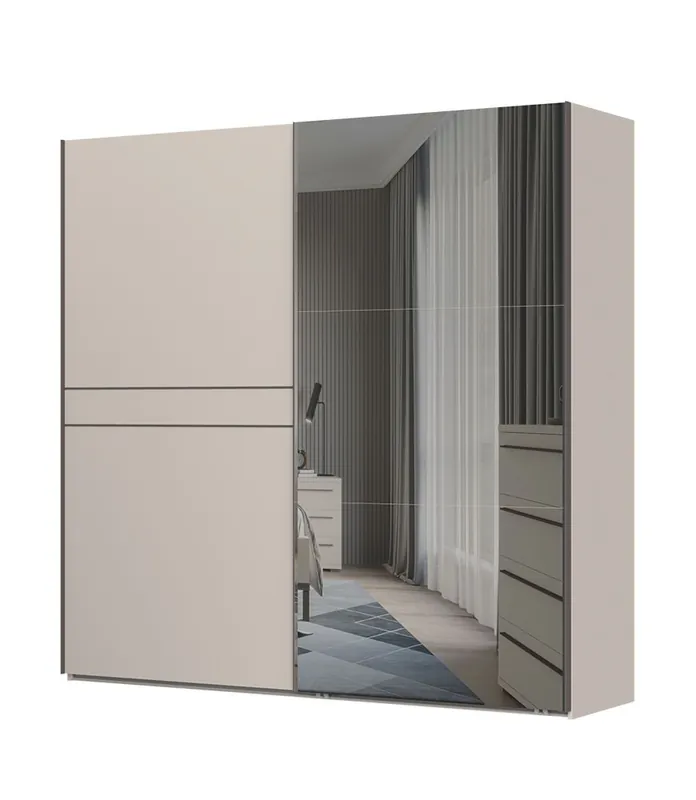 Letzte Chance Schiebetürenschrank mit genügend Stauraum Neiafu 91, Farbe: Kaschmir, Soft-Close-Funktion, eine Spiegeltür, vier Kleiderstangen, zwölf Fächer