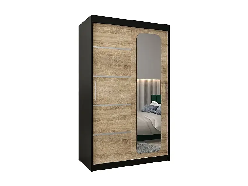 Letzte Chance SCHWEBETÜRENSCHRANK PROMO V2 200/120/62 2-türig (Schwarz/Sonoma)