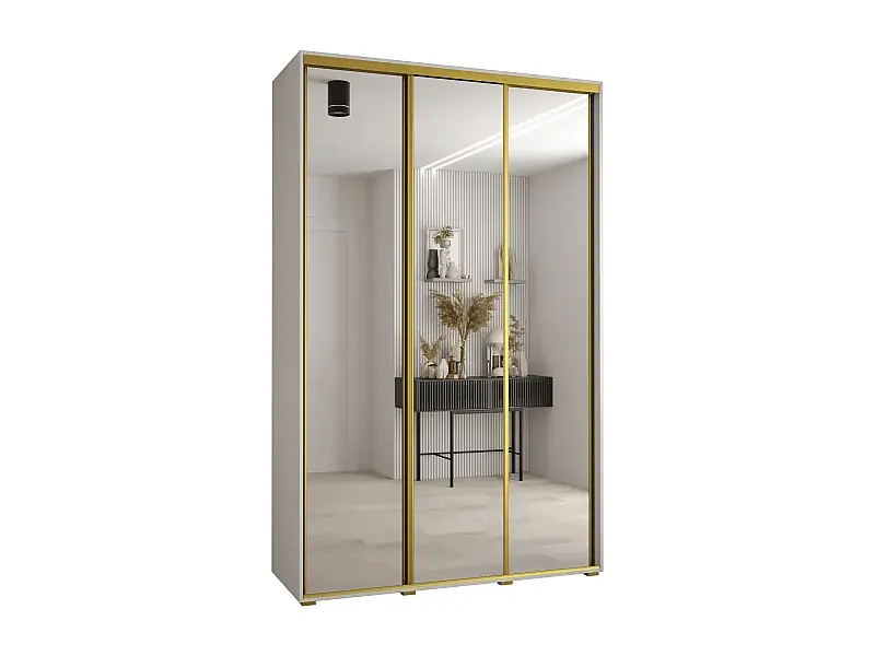 Markenware SCHWEBETÜRENSCHRANK DAVOS 2 235,2/150/45 3-türig (Weiß/Weiß/Gold)