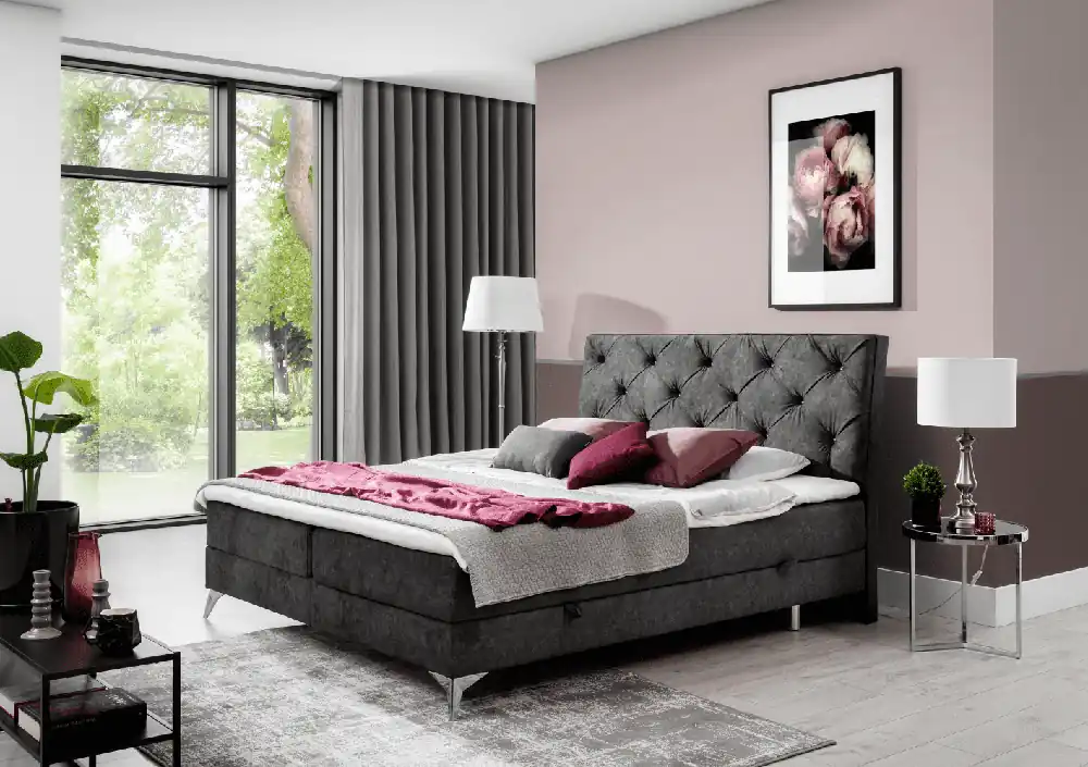 Luxuriöses Boxbett Atlantis | Stilvolles Design & maximaler KomfortLuxuriöses Boxbett Atlantis: Stilvolles Design trifft auf außergewöhnlichen Komfort Das Boxbett Atlantis bringt Eleganz und Funktionalität in Ihr Schlafzimmer. Mit seiner modernen Optik und den vielfältigen Farboptionen fügt es sich harmonisch in jede Einrichtung ein. Verfügbar in den Größen 120x200cm bis 180x200cm, bietet dieses Bett nicht nur eine komfortable Schlafgelegenheit, sondern auch wertvollen Stauraum. Design und Ästhetik für Ihr Zuhause Dieses stilvolle Boxbett ist in sieben Farben erhältlich, darunter dark grey und anthrazit, und passt sich mühelos verschiedenen Schlafzimmerstilen an. Mit seiner eleganten Kopfteilstruktur und dem hochwertigen Flachgewebe, das sowohl robust als auch pflegeleicht ist, wird das Atlantis zum Highlight in Ihrem Zuhause. Unvergleichlicher Komfort durch hochwertige Materialien Der Kern des Boxbetts besteht aus einem 4-Gang-Bonellfederkern, der in Kombination mit dem 4 cm dicken H30 Topper eine ideale Schlafunterlage bildet. Diese Kombination garantiert eine ergonomische Liegeposition und einen erholsamen Schlaf. Das Flachgewebe ist nicht nur optisch ansprechend, sondern auch langlebig und pflegeleicht, was für eine langanhaltende Freude am Produkt sorgt. Maße im Überblick für die ideale Anpassung an Ihren Raum Gesamt: 125 x 240 cm (Liegefläche 120 x 200 cm) Gesamt: 145 x 240 cm (Liegefläche 140 x 200 cm) Gesamt: 165 x 240 cm (Liegefläche 160 x 200 cm) Gesamt: 185 x 240 cm (Liegefläche 180 x 200 cm) Liegehöhe: 56 cm Kopfteilhöhe: 102 cm Topperhöhe: 4 cmFunktionalität trifft auf stilvollen Stauraum Das Atlantis Boxbett bietet mehr als nur eine Schlafgelegenheit. Der integrierte Bettkasten und der Stauraum im Kopfteil bieten Platz für Bettwäsche und andere Utensilien. Mit Abmessungen von 240 cm in der Länge und einer Liegehöhe von 56 cm fügt sich das Bett nahtlos in jedes Schlafzimmer ein und bietet gleichzeitig ausreichend Platz für Ihre Bedürfnisse. Individuelle Anpassung Erhältlich in mehreren Größen und Farben, können Sie das Boxbett Atlantis nach Ihren Wünschen anpassen. Zusätzlich bietet Myhomelando flexible Ratenzahlungen und eine Bestpreisgarantie, um Ihnen den Kauf so angenehm wie möglich zu gestalten. Ihre beste Wahl für Komfort und Stil Mit dem Boxbett Atlantis holen Sie sich nicht nur ein stilvolles Möbelstück, sondern auch höchsten Schlafkomfort ins Haus. Dank seiner Funktionalität und den vielfältigen Anpassungsmöglichkeiten ist es die ideale Wahl für jedes Schlafzimmer.