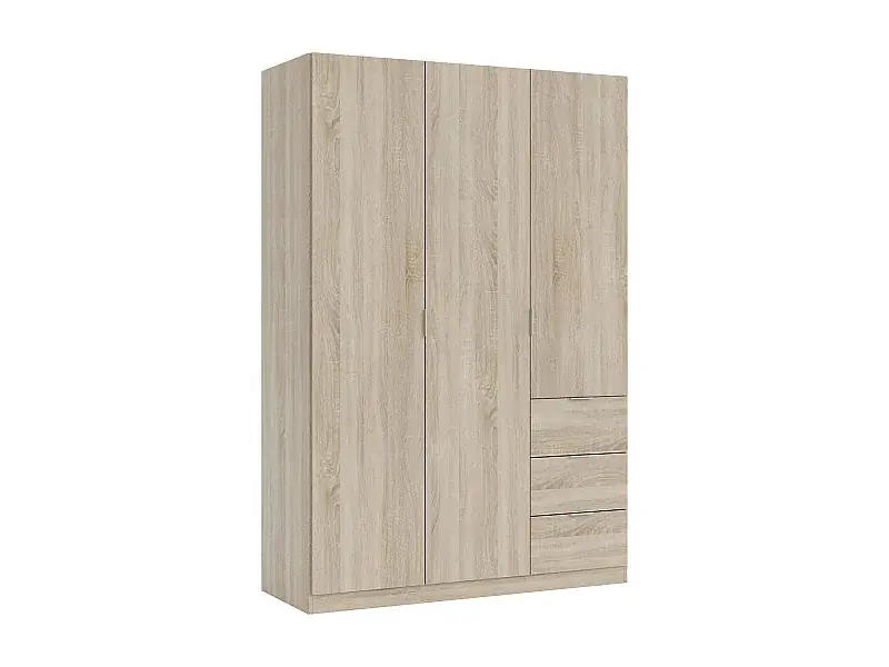 Mega-Angebot Garderobe Fullerton, Schlafzimmerschrank mit 3 Türen und 3 Schubladen, Schrank mit 3 Einlegeböden und Kleiderstange, 135x52h200 cm, Eiche