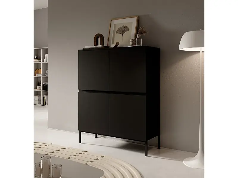 Mega-Angebot Highboard Hochkommode 4-türig, Schwarz, 100 cm – Bemmi