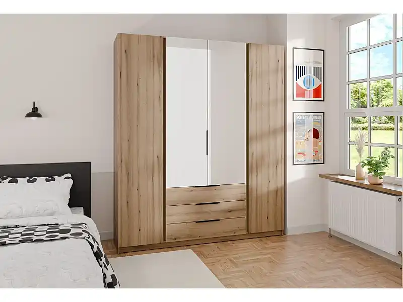 Mega-Angebot Kleiderschrank mit Spiegel – 3 Schubladen – 200 cm – Eiche – KAJA