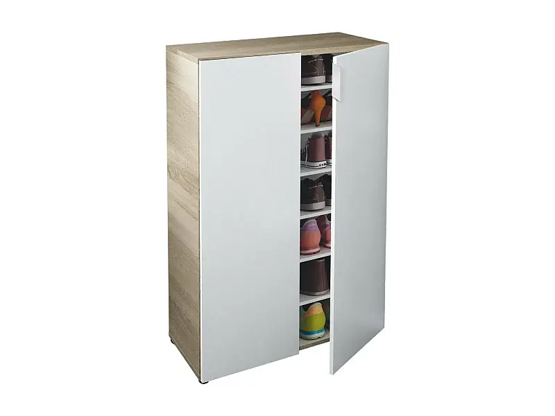 Mehrzweck-Kabinett Dlel, Beistellschrank mit 2 Türen, Niedriger Schuhschrank mit 6 Regalen, Niedriger Schuhschrank, 70x36h103 cm, Eiche und Weiß Super-Preis
