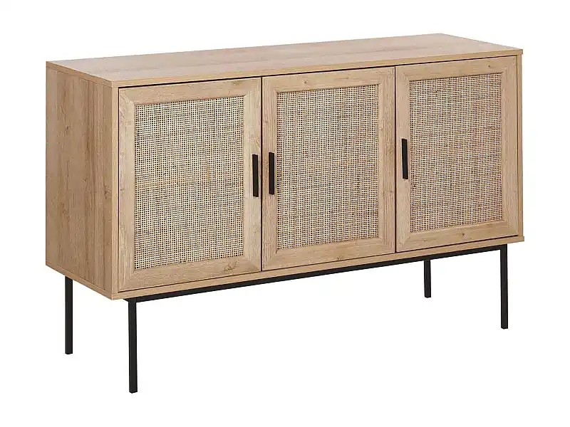 Modernes Sideboard 3 Rattan-Türen heller Holzfarbton schwarze Metallbeine Pasco Jetzt Kaufen
