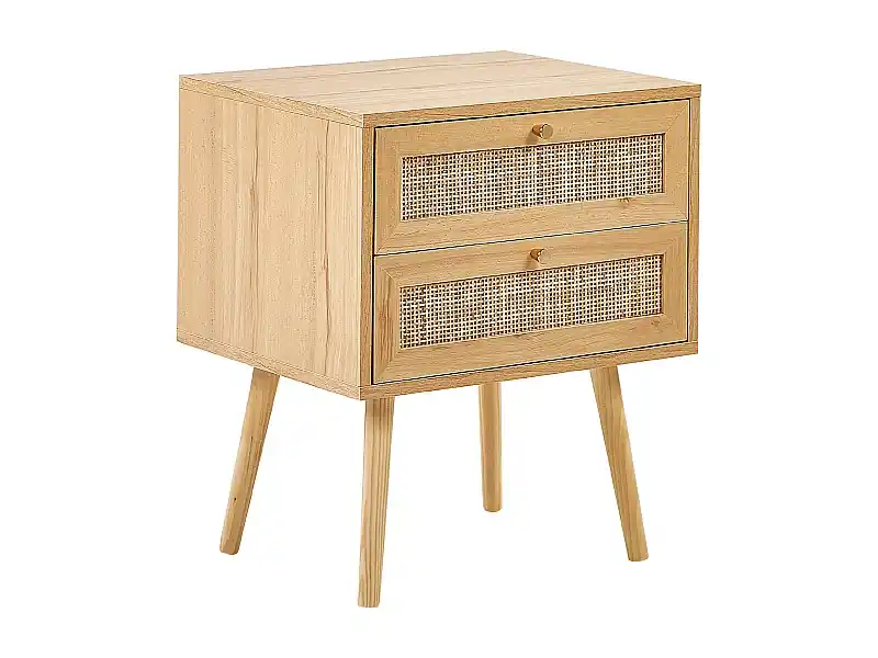 Nachttisch 2 Schublade Rattan Türen Boho Style Nachtschrank Helles Holz Perote Neu Im Sortiment
