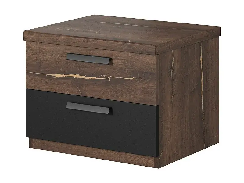 Nachttisch mit 2 Schubladen – Dunkle Eiche und Schwarz – Kollektion FOX Nur Für Kurze Zeit