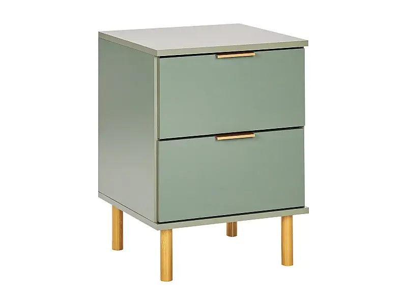 Nachttisch mit 2 Schubladen grün Holzfuße goldene Griffe Retro-Design Walpole Angebot