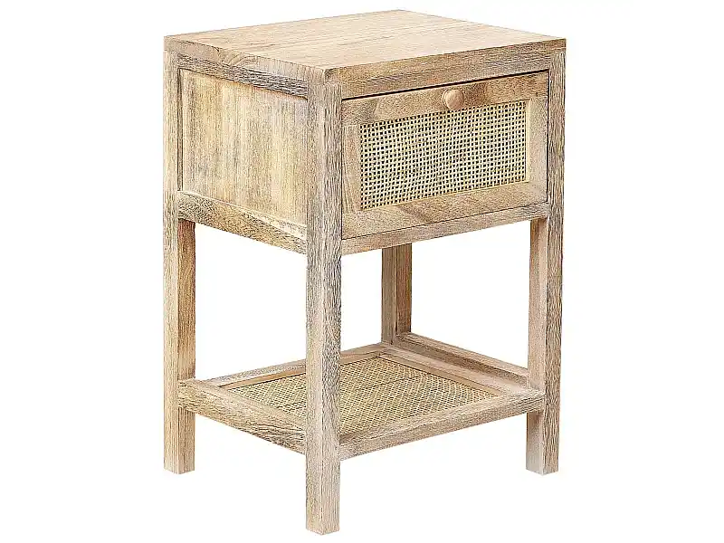 Nachttisch Rattan Paulowniaholz heller Holzfarbton mit Schublade Rustikal Esto Schnäppchen