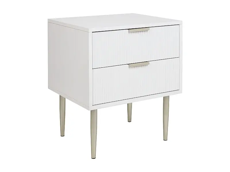 Nachttisch weiß / gold MDF Metallbeine 2 geriffelte Schubladen modern Soho Letzte Chance