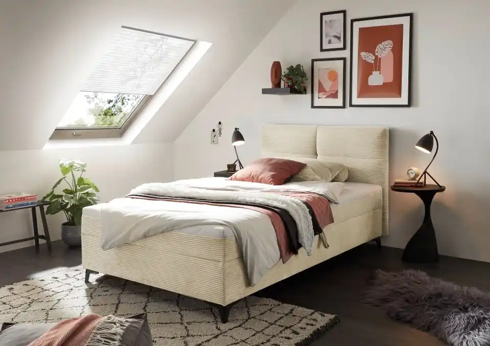 Neu Boxbett Andon 120×200 cm mit Bettkasten Farbe Cream – ED Exciting Design, Zoom Breitcord, Bonell-Federkern und Schaumtopper