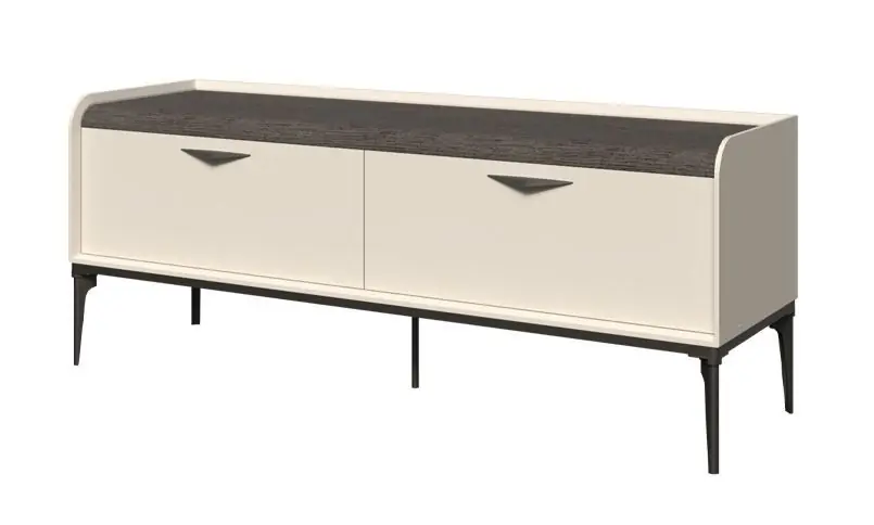 TV-Unterschrank mit 2 Schubladen Manono 01 | Creme | 66 x 167 x 50 cm | Soft Close System | abgerundete Ablagefläche in Eiche-Grau-Dekor | Metallbeine