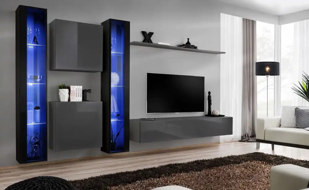 Entdecken Sie die neue Wohnwand im eleganten Stil Balestrand 250, eine perfekte Ergänzung für jedes moderne Wohnzimmer. Mit ihrem eleganten schwarz-grauen Farbton passt sie perfekt in verschiedene Raumstile. Dank ihrer beeindruckenden Maße von 180 x 330 x 40 cm (H x B x T) ist diese Wohnwand das Highlight jeder Wohnzimmereinrichtung.