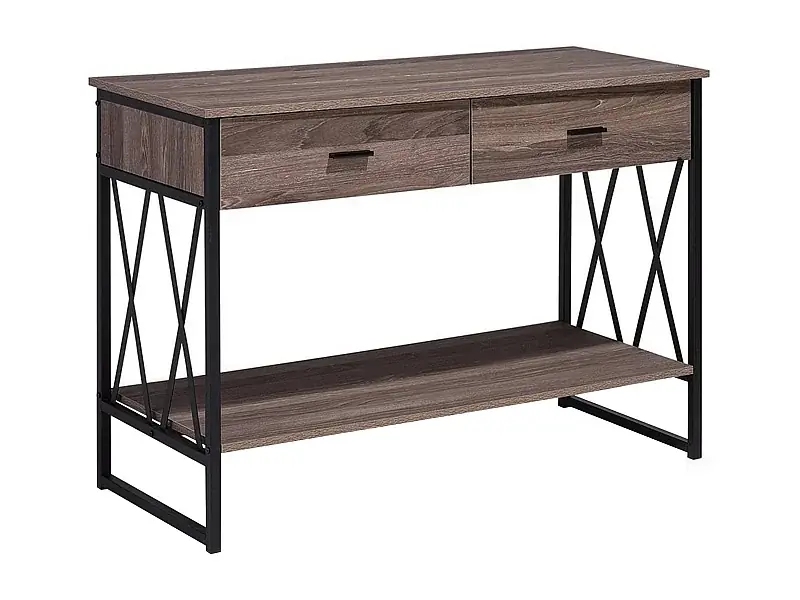 Neu Praktischer Konsolentisch Holzoptik dunkelbraun 2 Schubladen Industrie Ayden