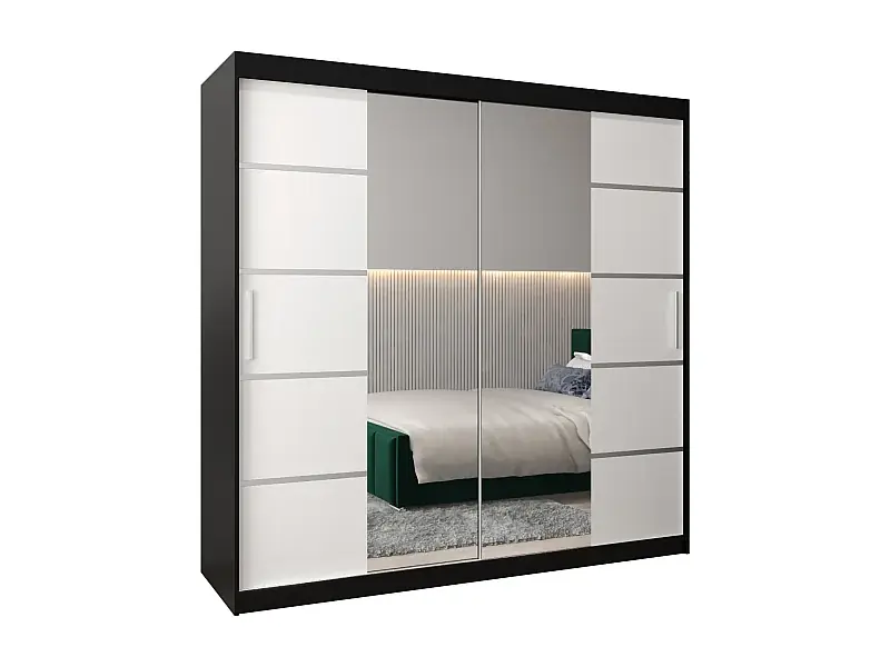 Neu SCHWEBETÜRENSCHRANK VERONA 4 200/200/62 2-türig (Schwarz/Weiß)