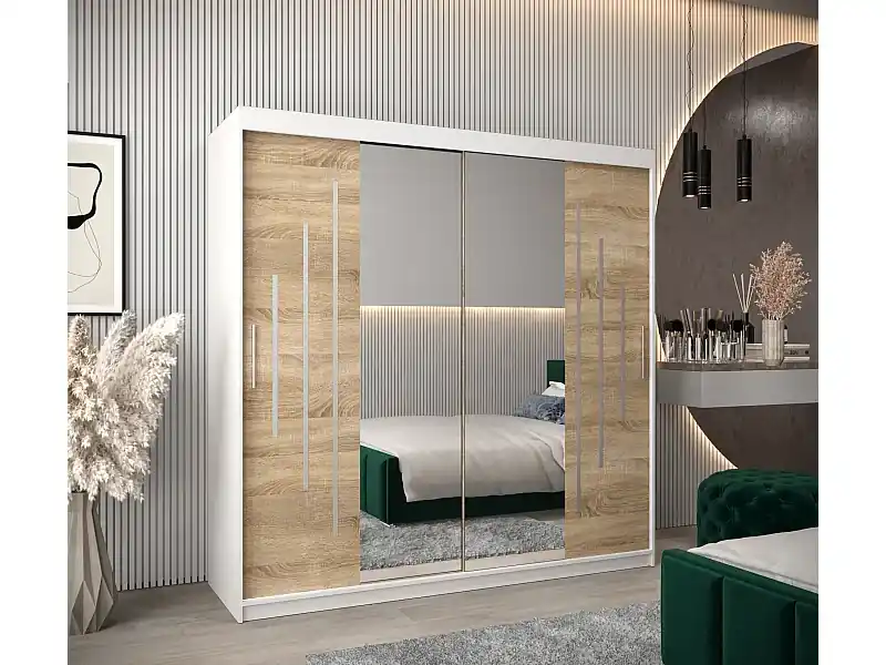 Neu SCHWEBETÜRENSCHRANK YORK 1 200/200/62 2-türig (Weiß/Sonoma)