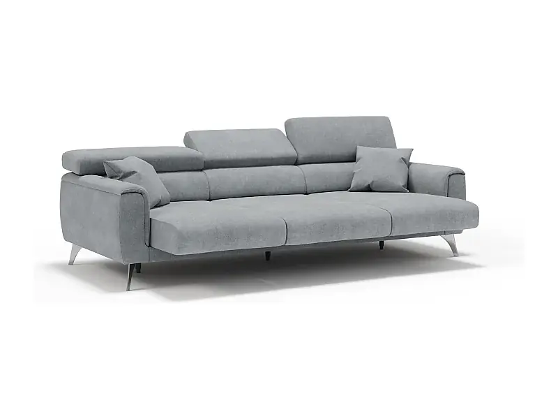 Neue Kollektion Caravaggio Sofa mit 3 unabhängigen ausziehbaren Sitzen und verstellbaren Kopfstützen aus wasserfestem Stoff T02 244 cm Hellgrau