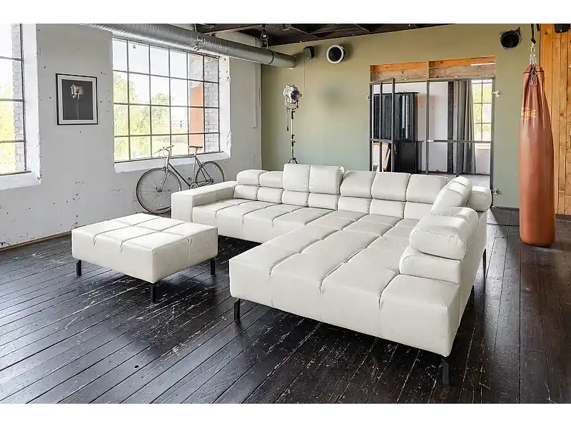 Neue Kollektion Ecksofa – Hellgrau Leder – NELSON