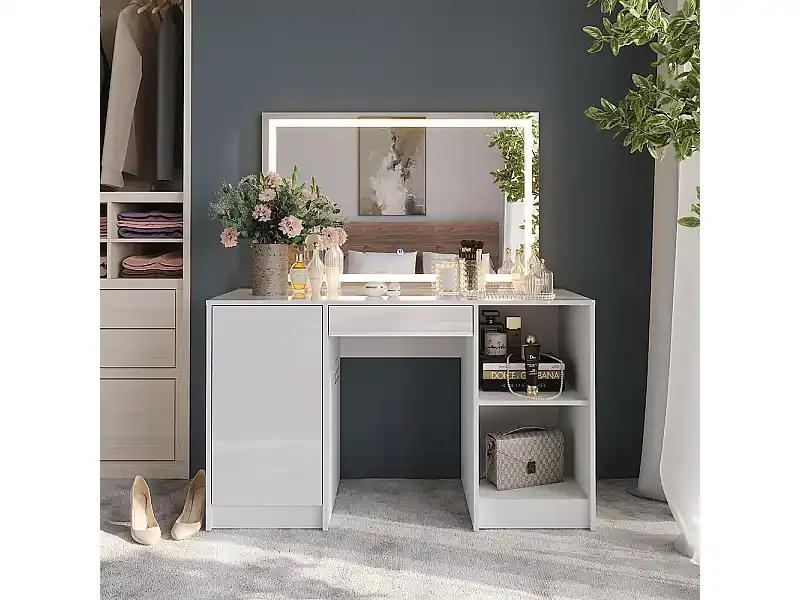 Neue Kollektion Schminktisch weiß/weiß hochglanz 128.2×50.1×76 sherry