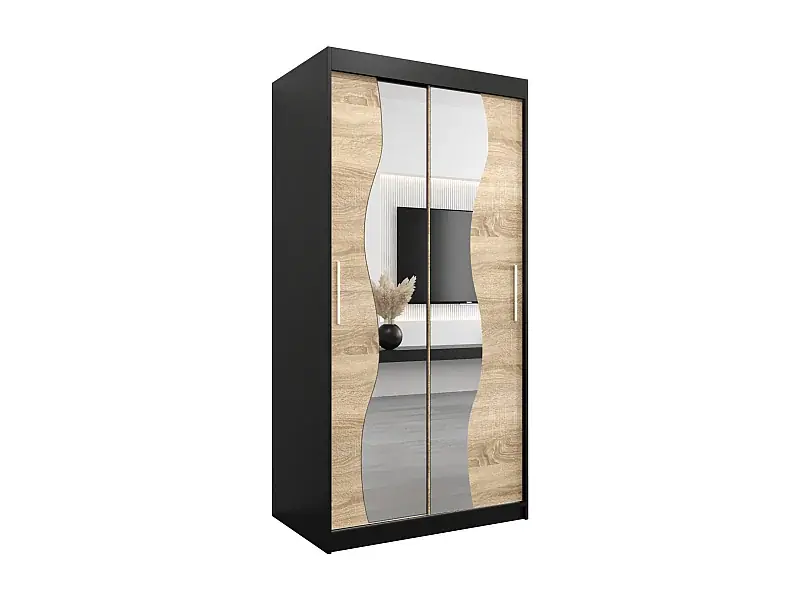 Neue Kollektion SCHWEBETÜRENSCHRANK MADRYT 200/100/62 2-türig (Schwarz/Sonoma)