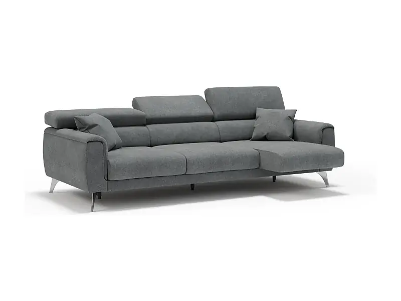 Neue Ware Caravaggio Sofa mit 3 unabhängigen ausziehbaren Sitzen und verstellbaren Kopfstützen aus wasserfestem Stoff T02 244 cm Grau