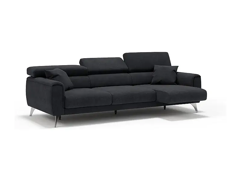 Neuheit Caravaggio Sofa mit 3 unabhängigen ausziehbaren Sitzen und verstellbaren Kopfstützen aus wasserfestem Stoff T02 244 cm Schwarz