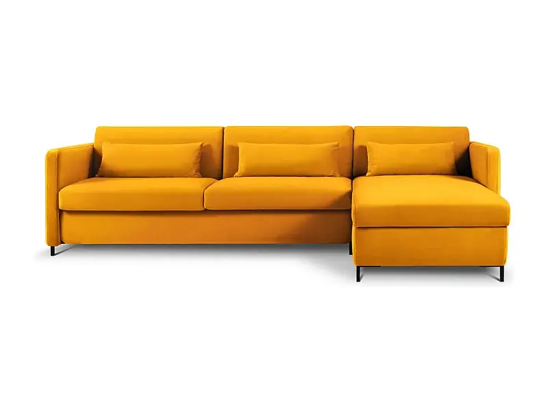 Neuheit CXL by Christian Lacroix – 5-Sitzer ausklappbares Ecksofa rechts „Yanis“ Sitzer aus Samt gelb – 280x170x80cm