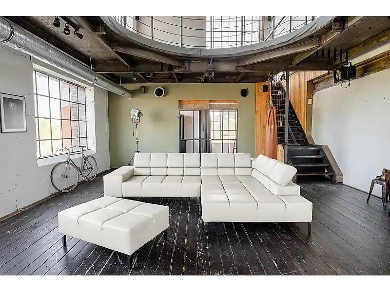 Neuheit Ecksofa – Hellgrau Leder – NELSON