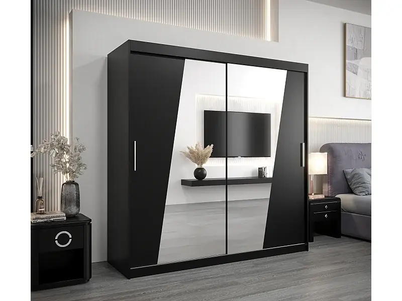 Neuheit Schwebetürenschrank Wave 200/200/62 2-Türig (Schwarz)