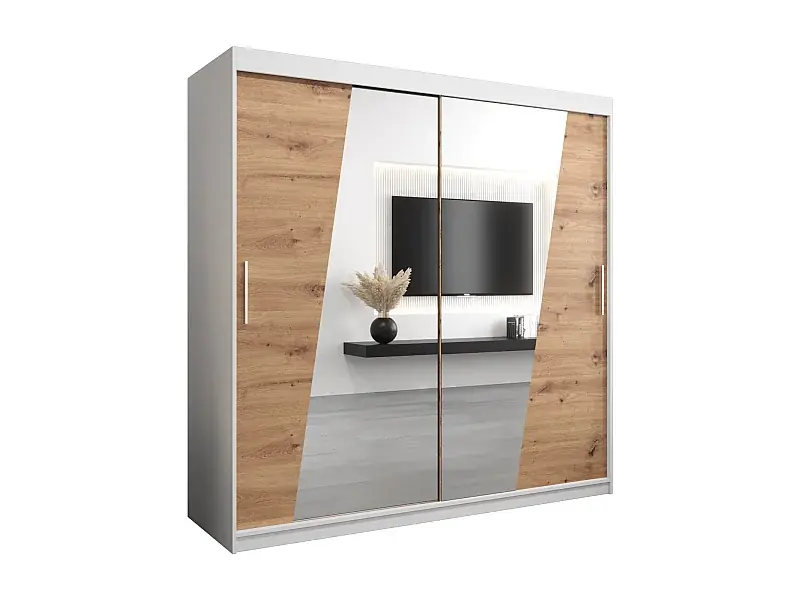 Neuheit Schwebetürenschrank Wave 200/200/62 2-Türig (Weiß/Artisan)