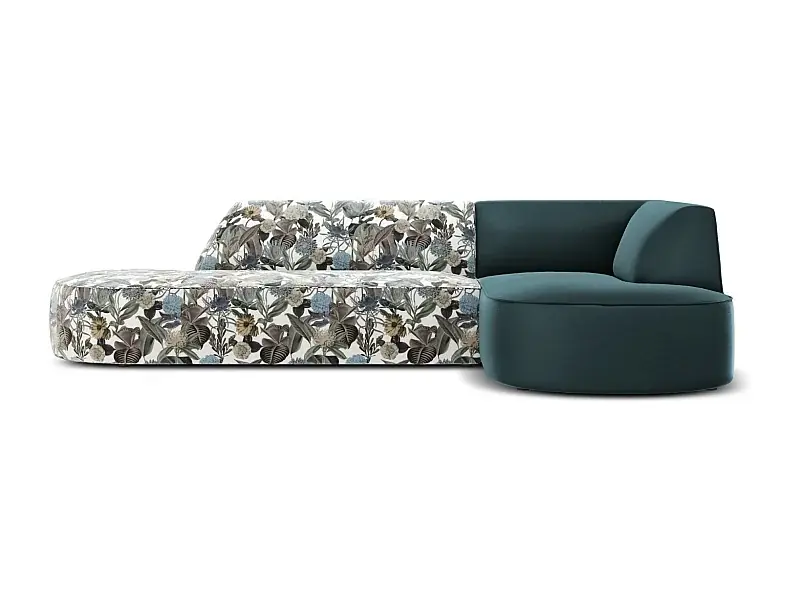 Nur Für Kurze Zeit CXL by Christian Lacroix – 4-Sitzer Ecksofa rechts „Charles“ Sitzer aus Samt blaues gartenmotiv – 273x180x69cm
